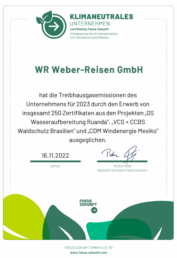 Für alle Reisen gilt eine Mindestteilnehmerzahl von 20 Personen, bei Absagefrist bis